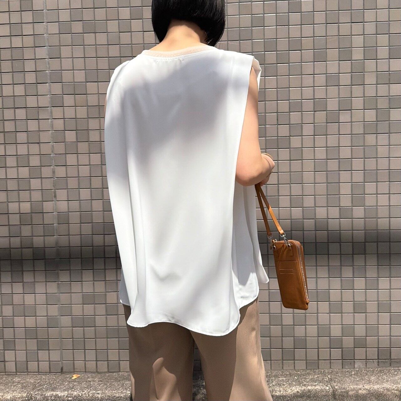 ショルダータックが入り、きちんと感がありながら、涼しく着用できる大人のブラウス。