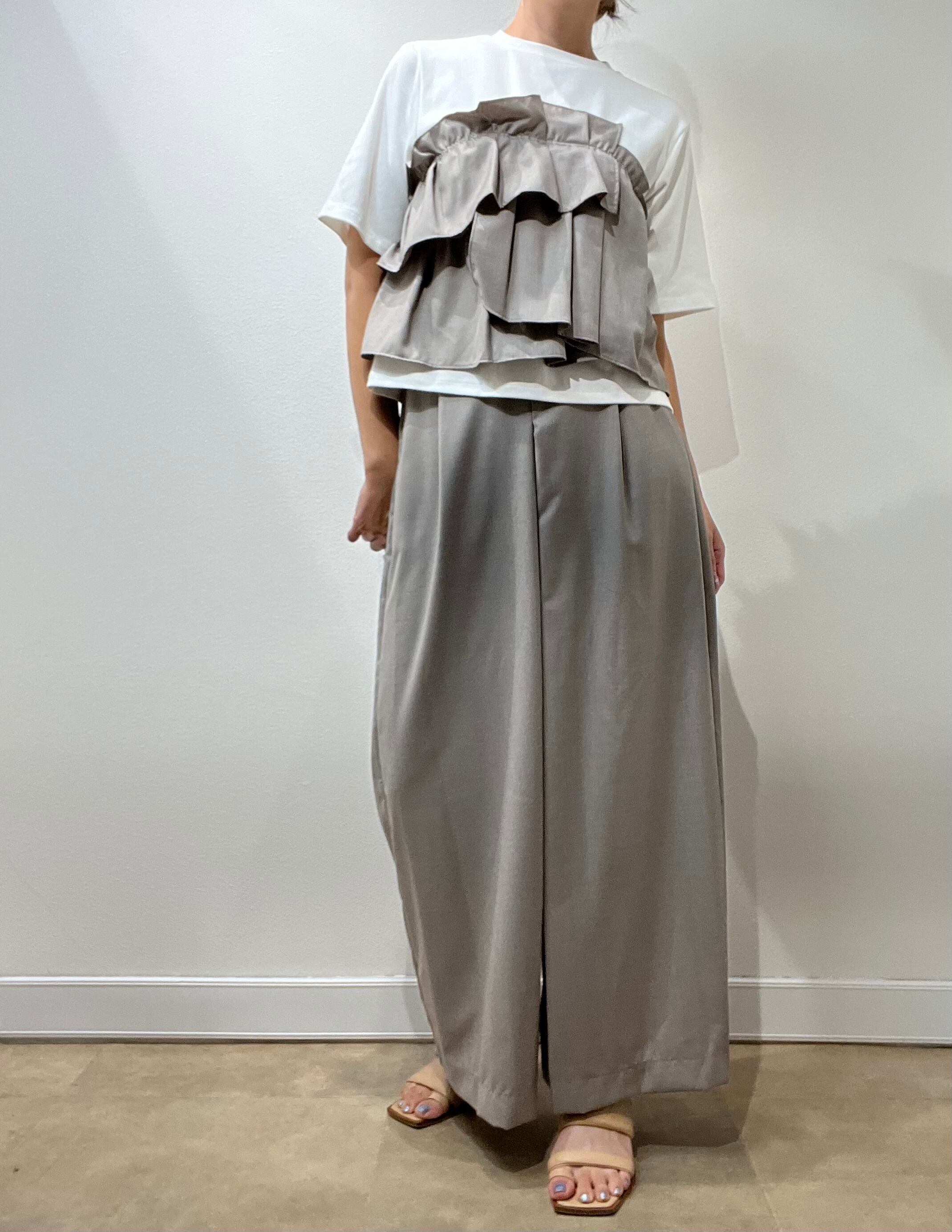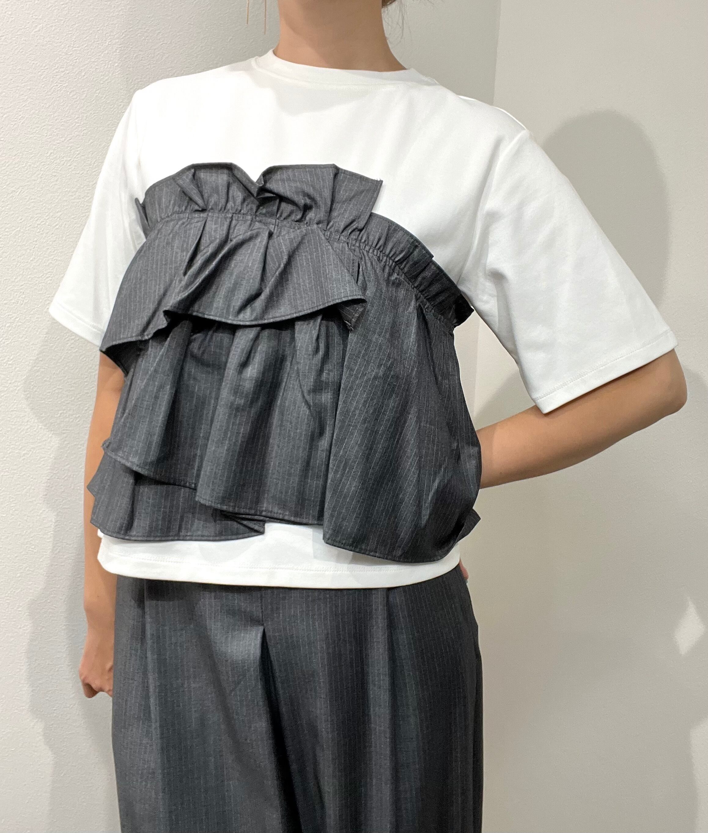 ≫≫たっぷりなフリルがドッキングされた晩夏に向けてのTシャツトップス。