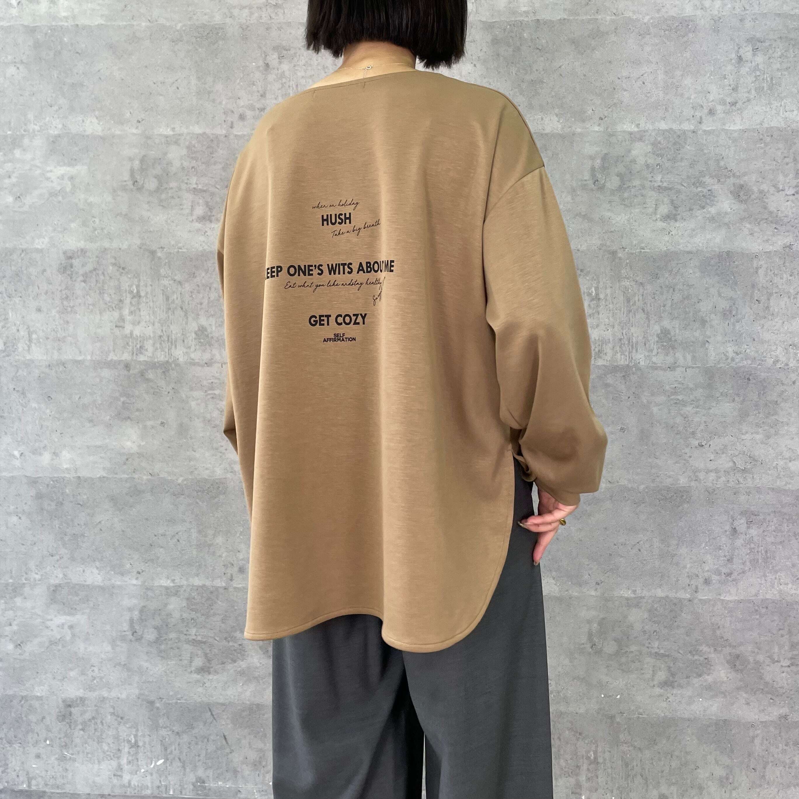 前後に施したロゴプリントが着映えします。