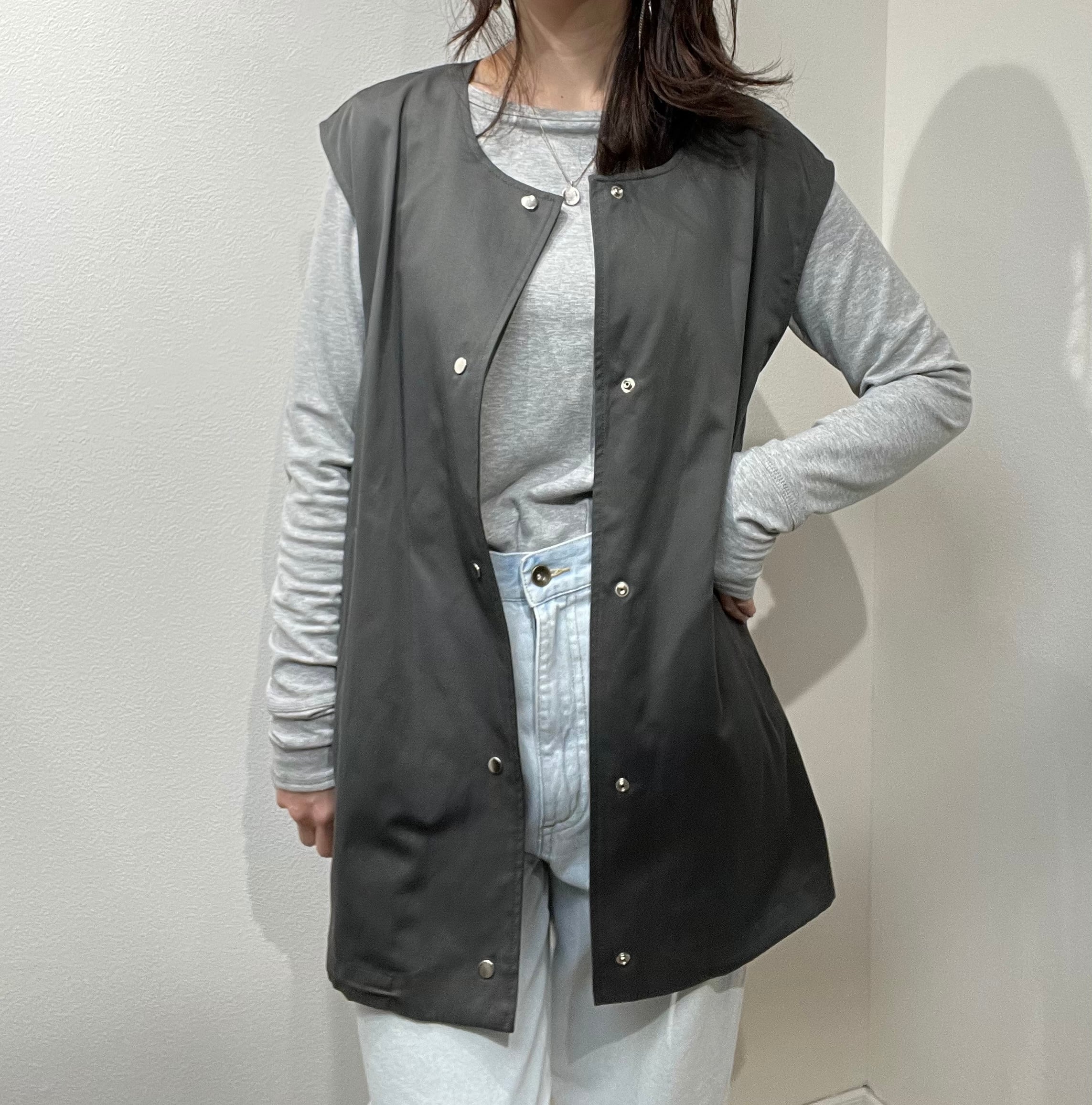 ベスト・ショート丈ブルゾンそして2枚重ねて、ミディアム丈ブルゾンにもなる賢いアイテム。