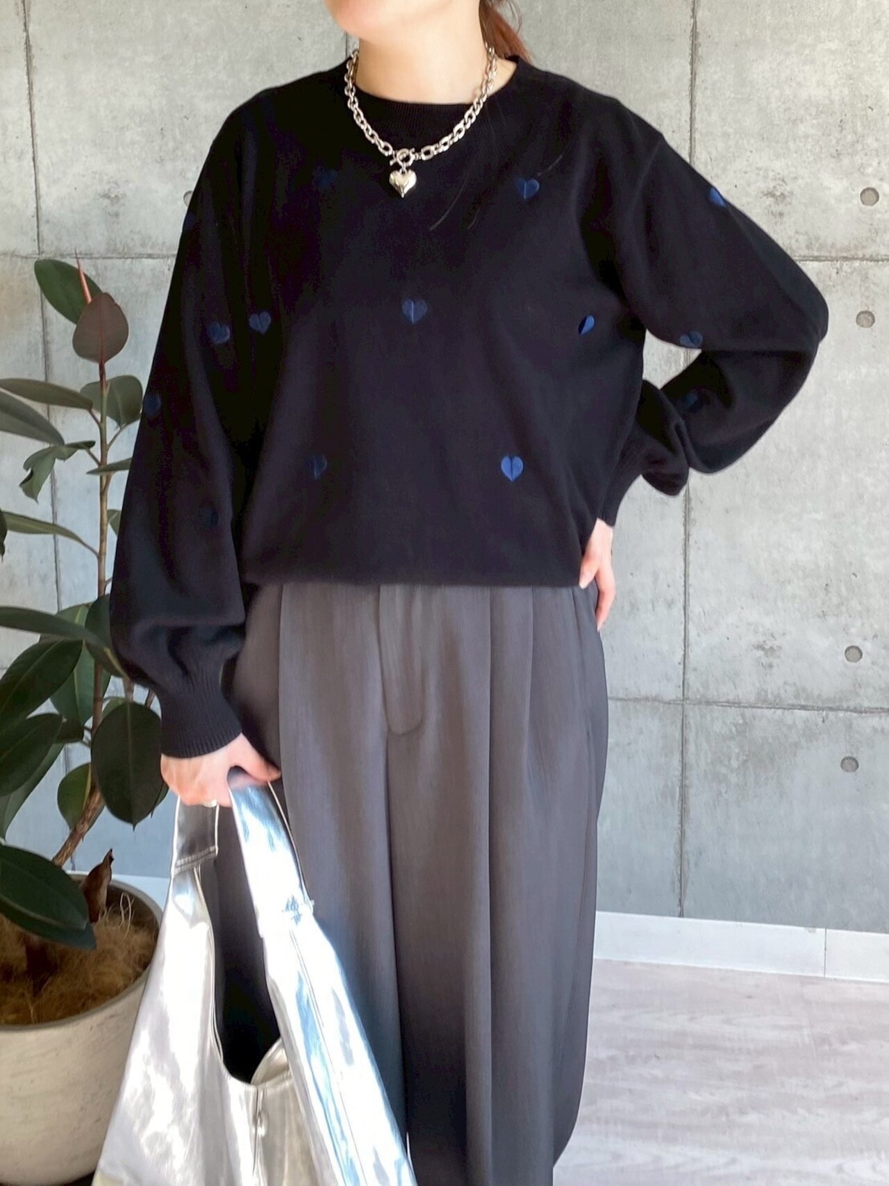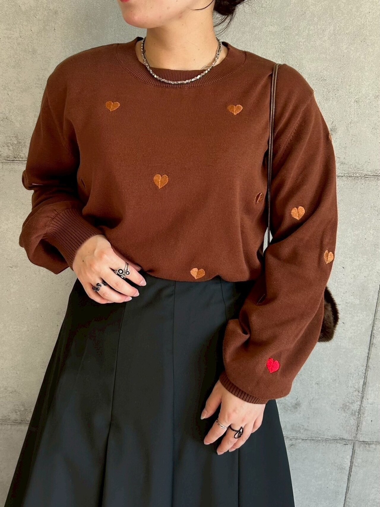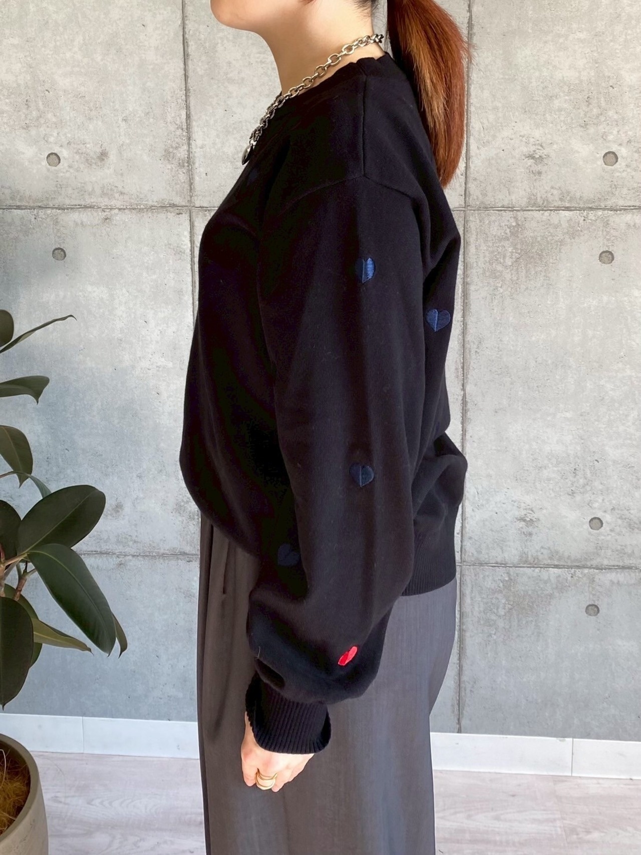 袖口のモチーフが1つだけ映えるカラーになっており、1枚で着てポイントに。