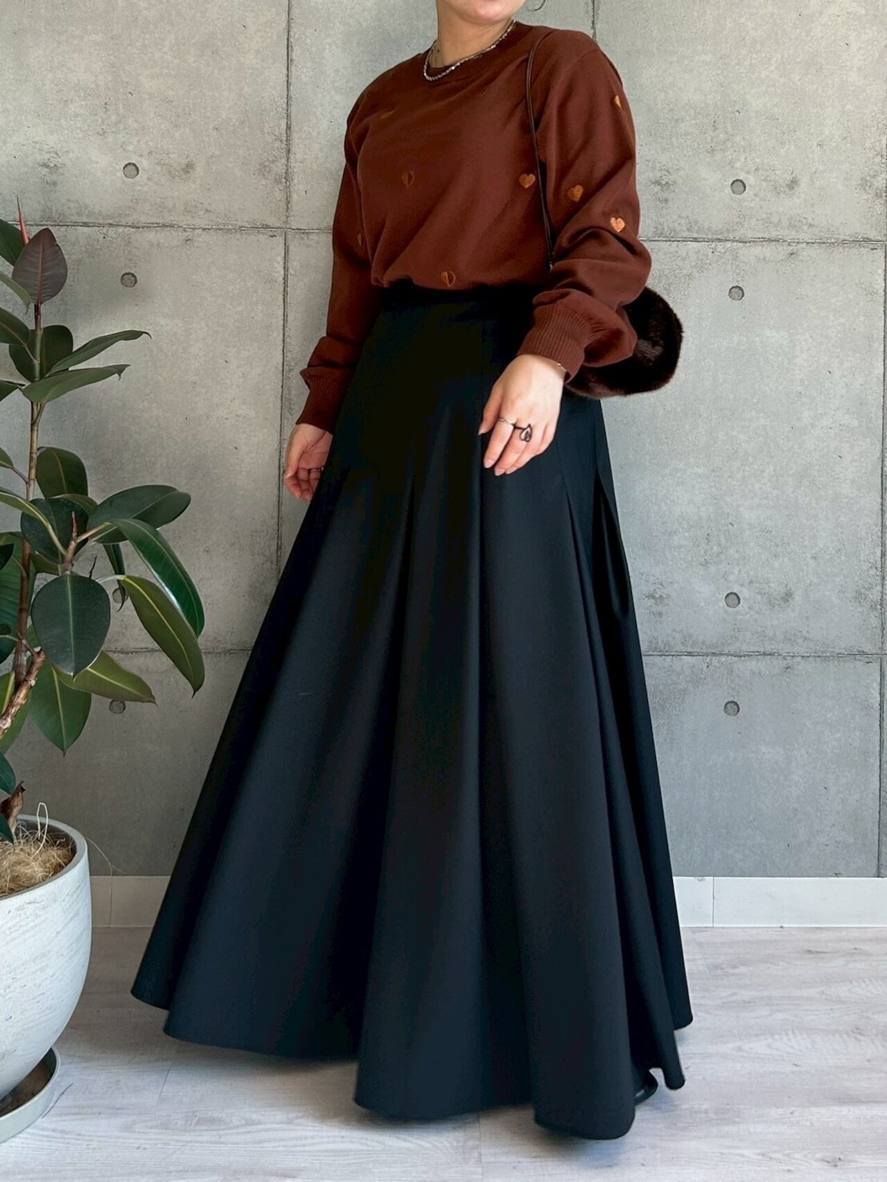 全体的にはベースの生地とさりげない配色モチーフにすることで大人ぽく着用できる印象にしました。