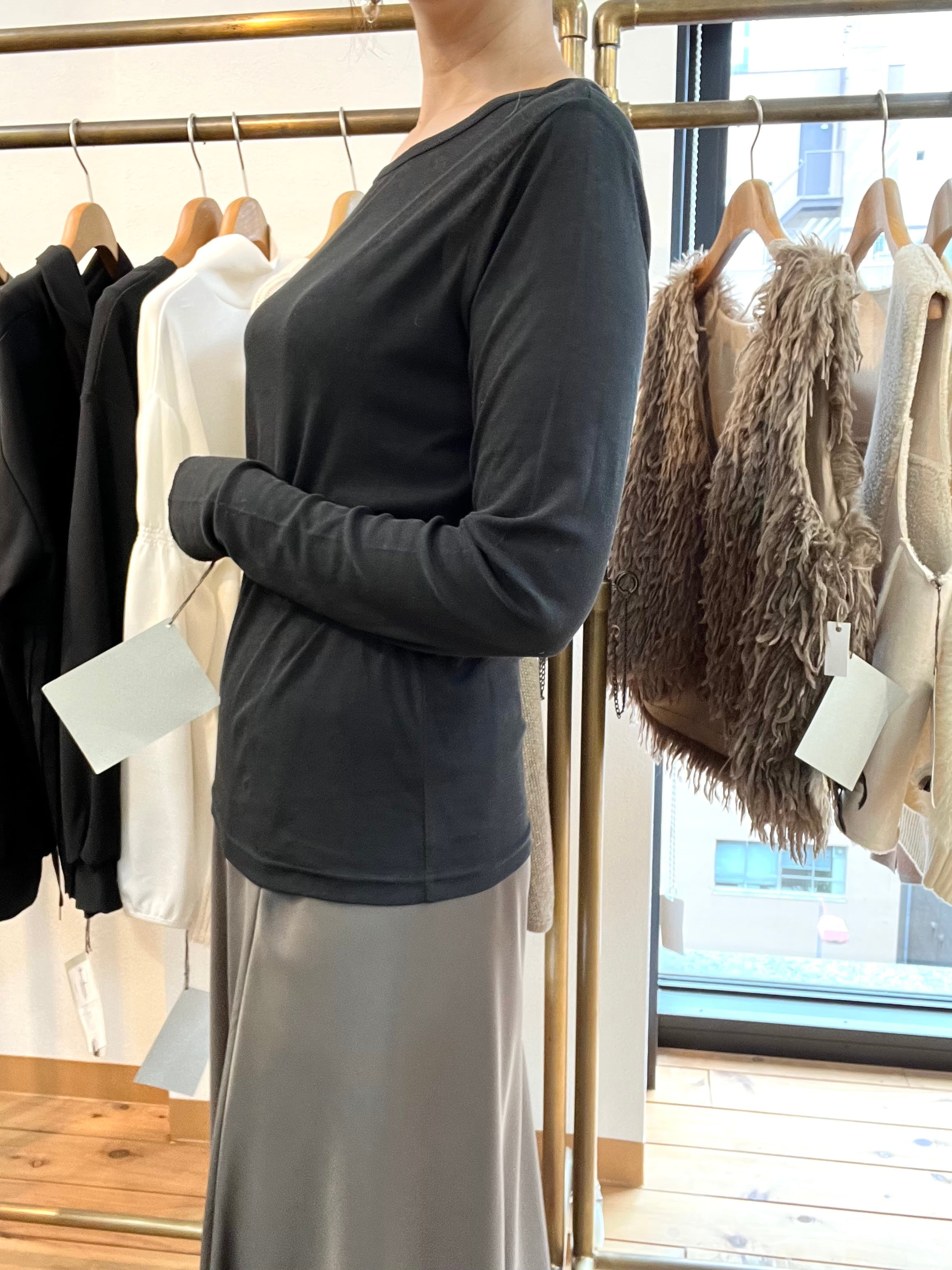ストレッチが良く効いていて、1枚でもインナーとしても、シーズンレスで使える賢いトップスです!