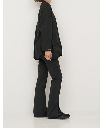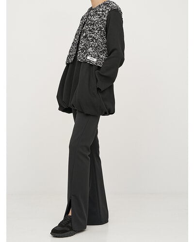裾のバルーン仕様で作るふくらんだフォルムが特徴で、カジュアルなアイテムに柔らかくフェミニンな雰囲気を与えます。