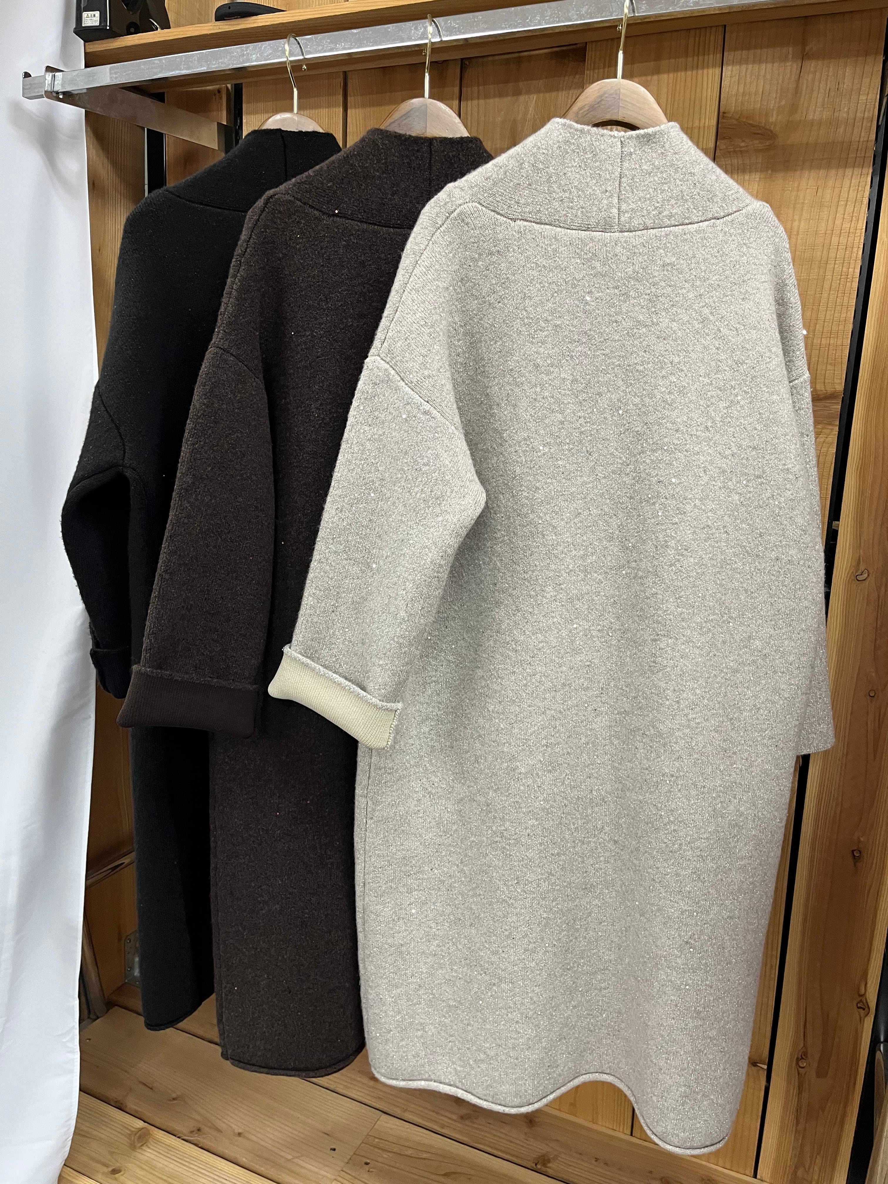 ≫≫控えめなスパンコールが程よい輝きを放つニットコート。