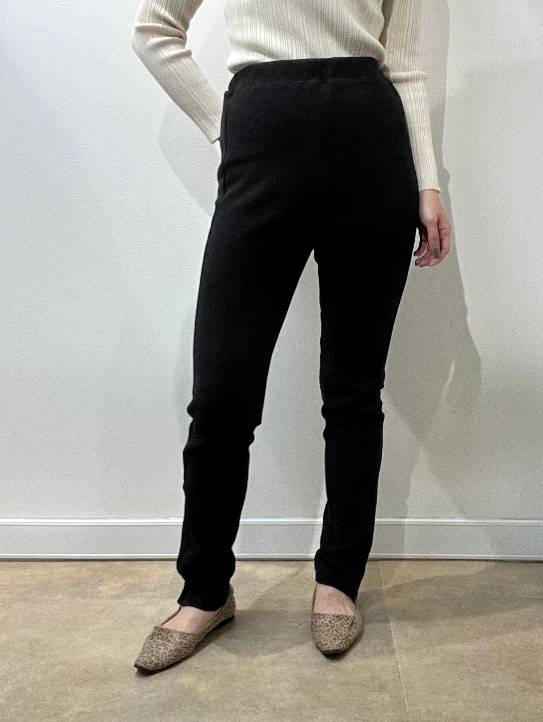 ≫≫程よいスッキリシルエットと裾のファスナーが細見えするタイトパンツはウエストゴムとストレッチ素材でイージー仕様に仕上げました。