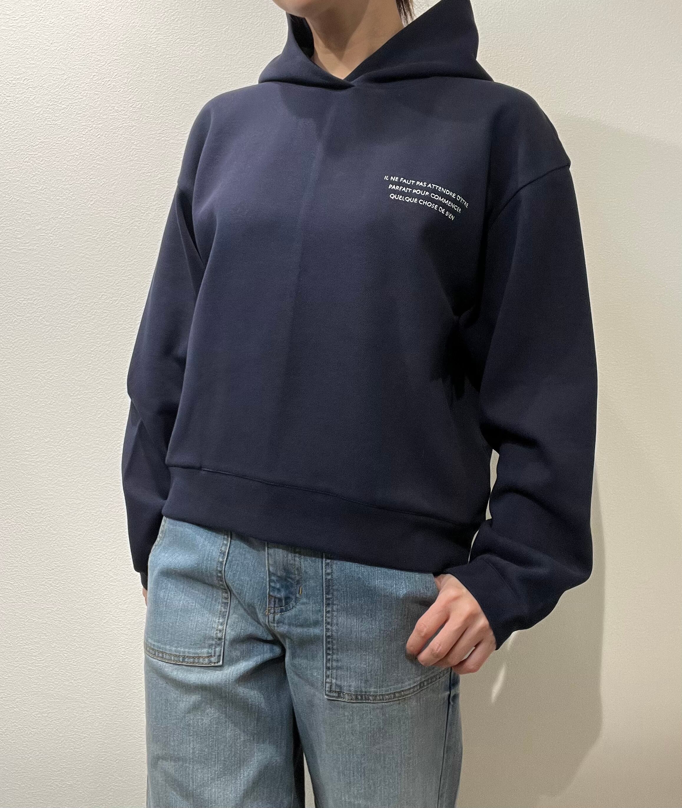 左胸に入れた小さめのロゴ刺繍がポイントです。ロゴの意味は、フランスのことわざです。