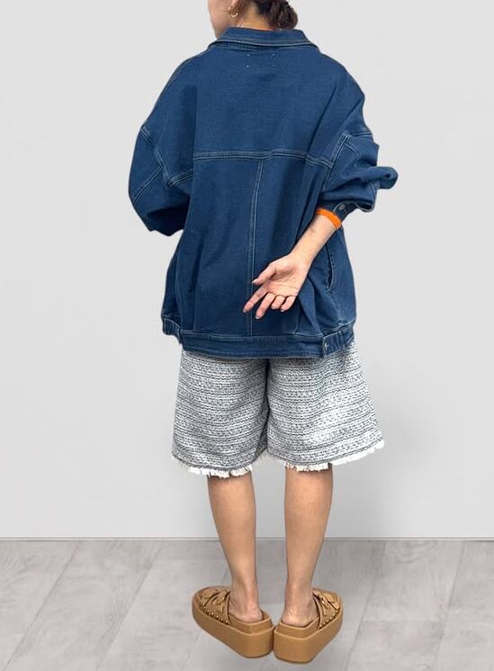 【QTUME】リサイクルストレッチデニムオーバーシルエットジャケット 612‐24009