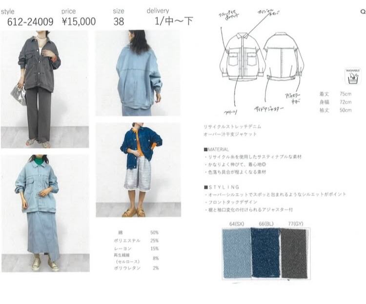 ≫≫リサイクル糸をしようした、サスティナブルな素材のデニムジャケット。