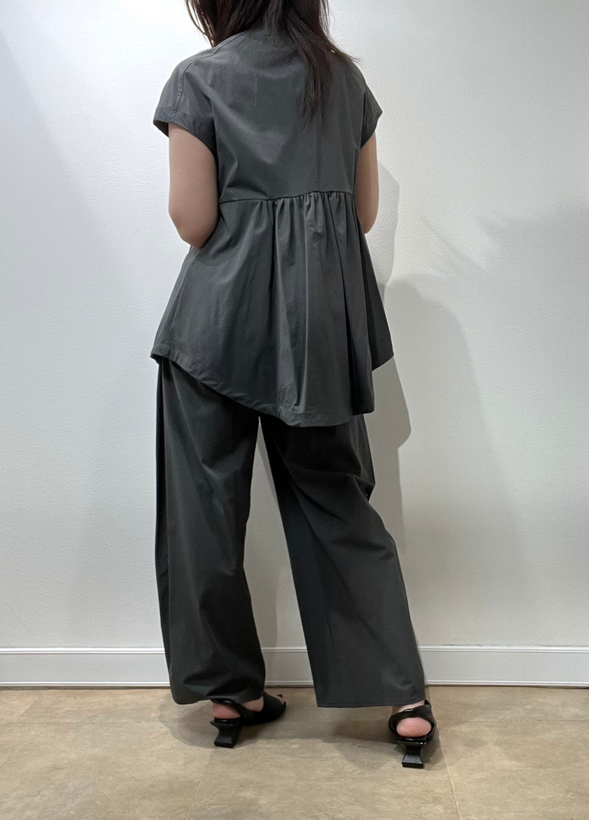 タックデザインでふんわりした裾のボリューム感は、大人可愛く着こなせます。