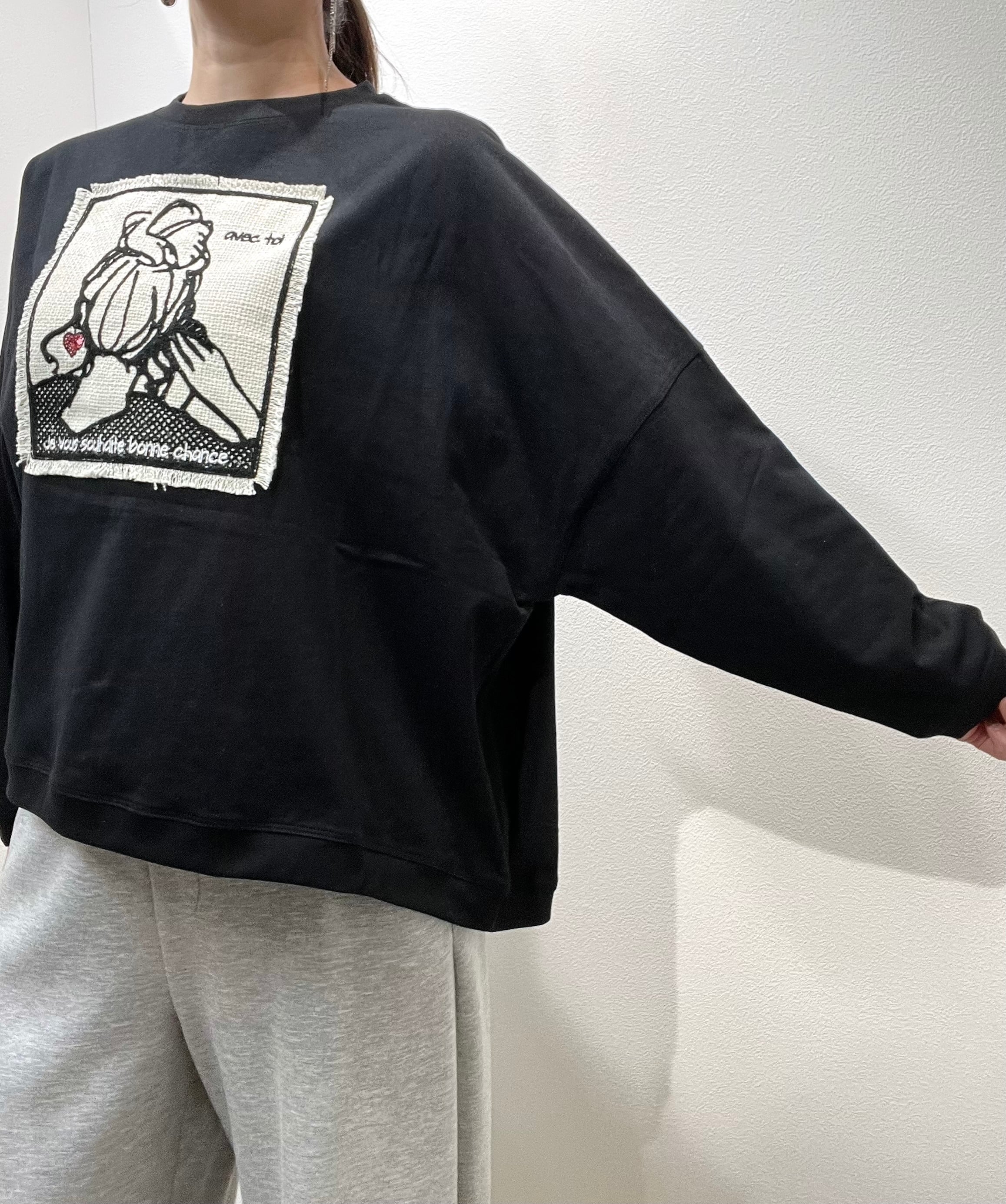 【MARIED'OR】刺繡貼付け身巾ワイドクルー 19541