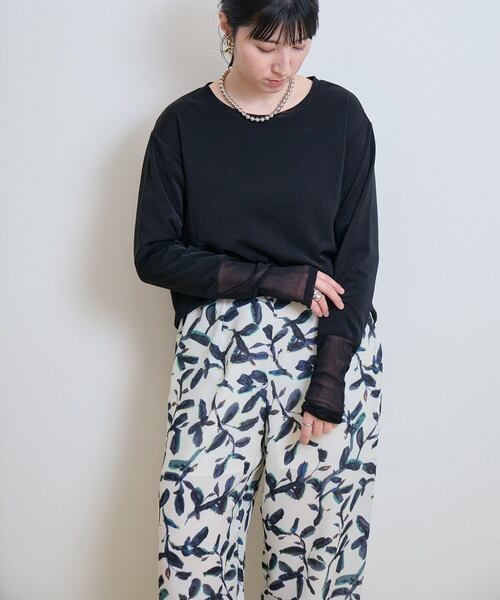 シンプルなロンTですが、落ち感のあるダブルクロスを使用し綺麗めな印象に。
