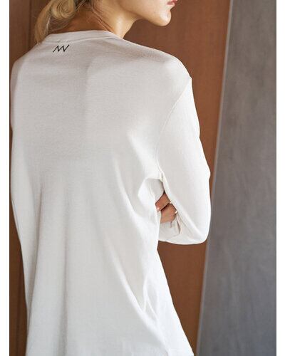 繊細な綿素材のリブ生地を使用。通常の糸と比較して格段に毛羽が少なく、シルクのような光沢や滑らかさがでるというのが特徴のコンパクトヤーンを使用したリブ生地を採用、上品な滑らかさのあるコットンリブは肌さわりも良くおすすめです。 程よく体に沿うようにデザインされているので、レイヤードのインナーにも最適です。 後衿ぐりに施したワンポイント刺繍もほどよいアクセントに。 衿ぐりはあえて狭く設定、ニットやシャツの下に着たときに衿ぐりからTシャツを覗かせるスタイリングがおすすめの着こなしです。