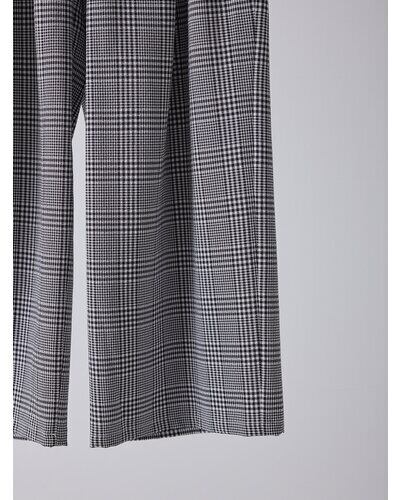 シルエットは2本のタックで作る女性らしらとマニッシュなムードを兼ねた人気のワイドパンツの形を採用。さらっとした肌触りと軽さのある生地はボリュームのあるシルエットでも重くならず、イージーケアなのもうれしいポイントです。 主張しすぎない大人っぽいチェック柄は、程よいアクセントになり、シンプルなトップスとも合わせやすい1枚です。