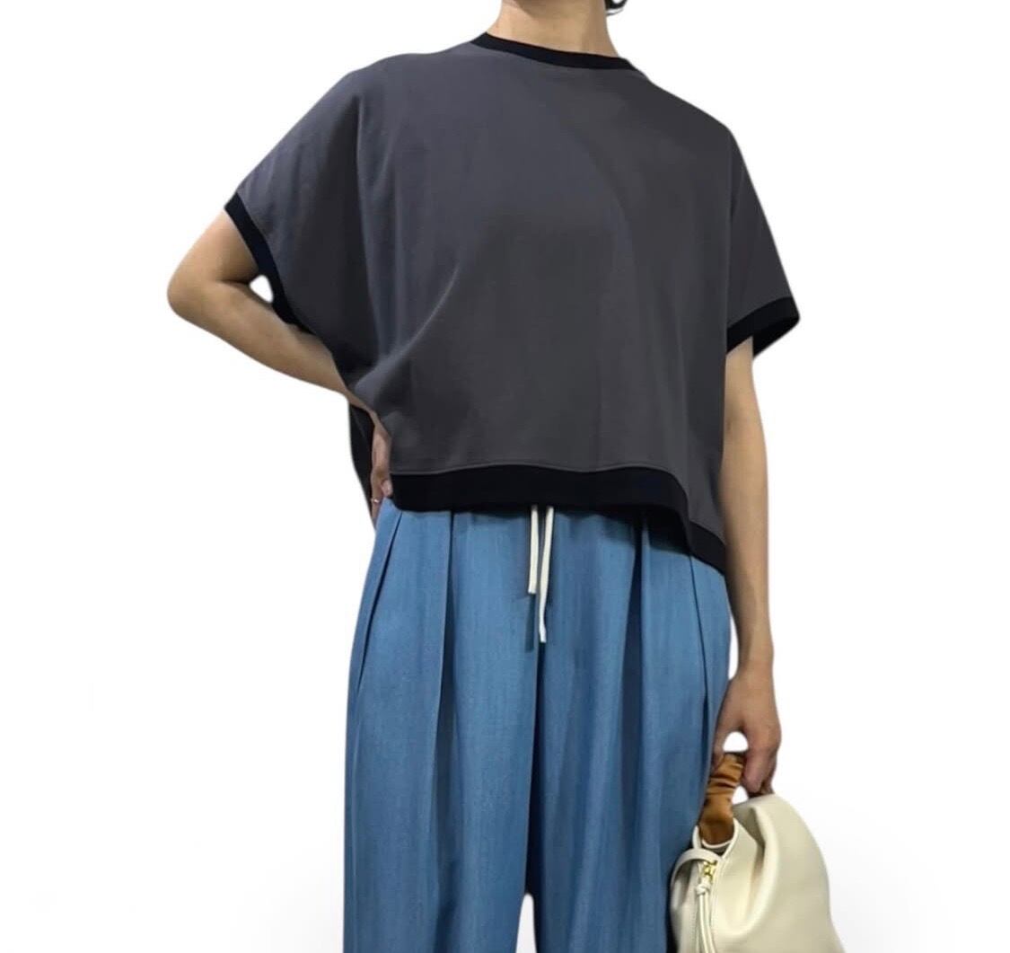 【QTUME】天竺バイカラー細リブT 610-25156