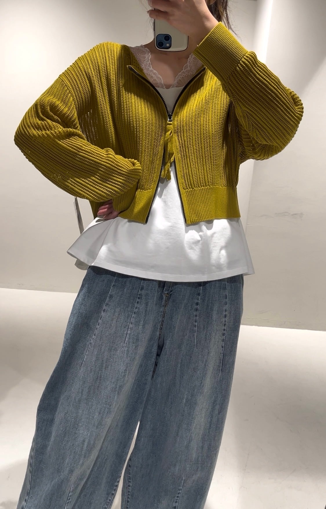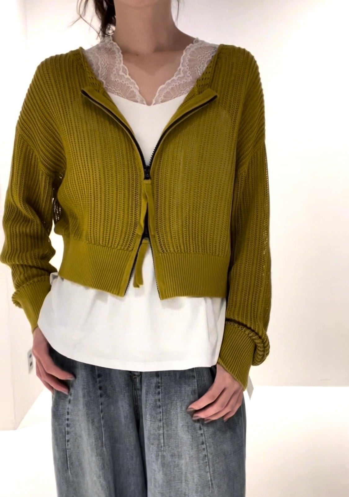 ダブルジップなので、下から開けてボレロのように着用しても可愛いですね。
