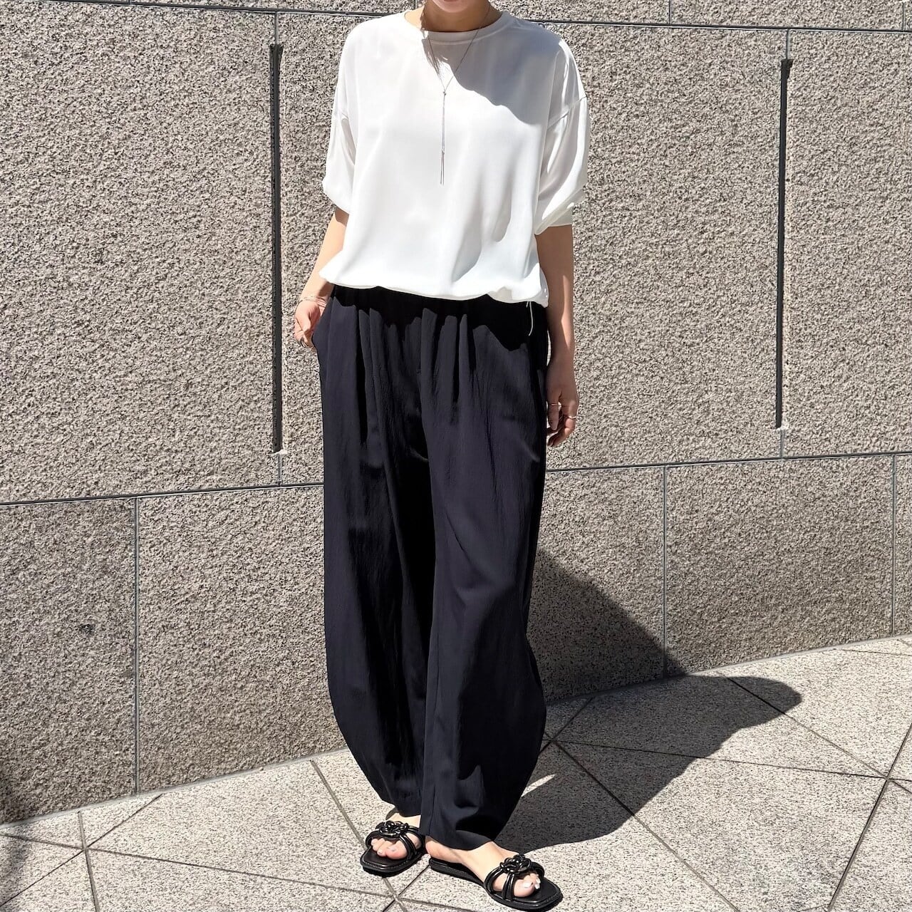 ベーシックながらも襟ぐりと袖口にリブ地を使い、裾もゴムで調節できます