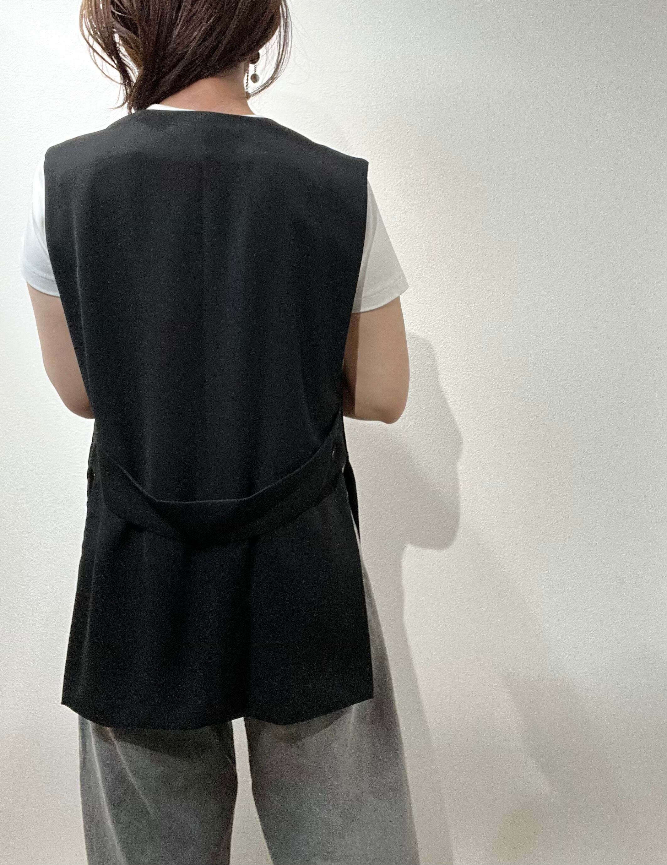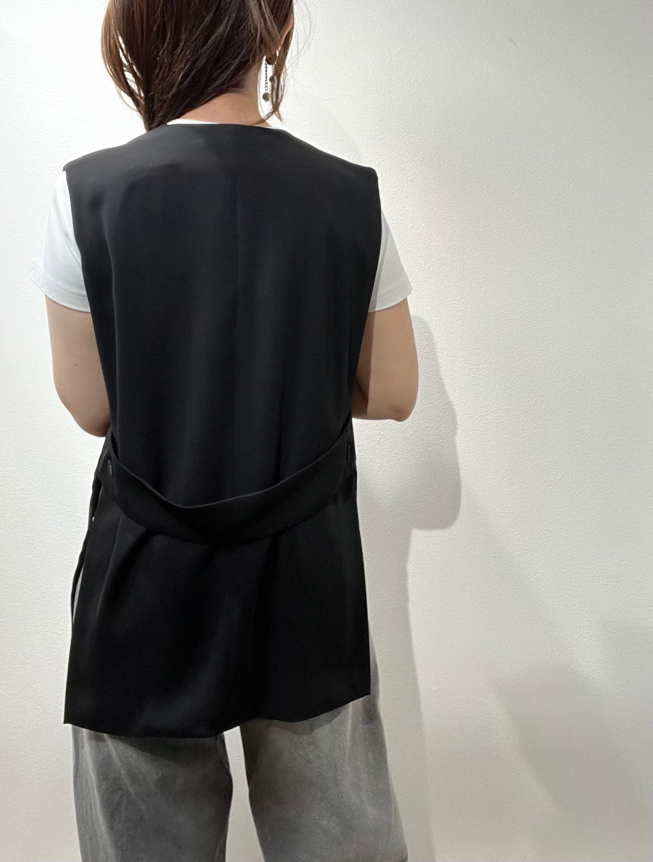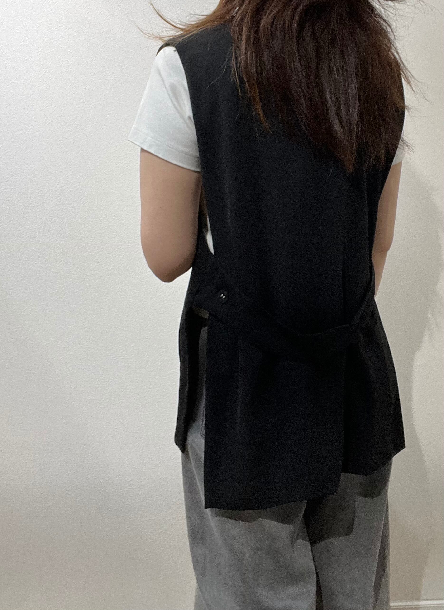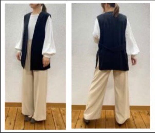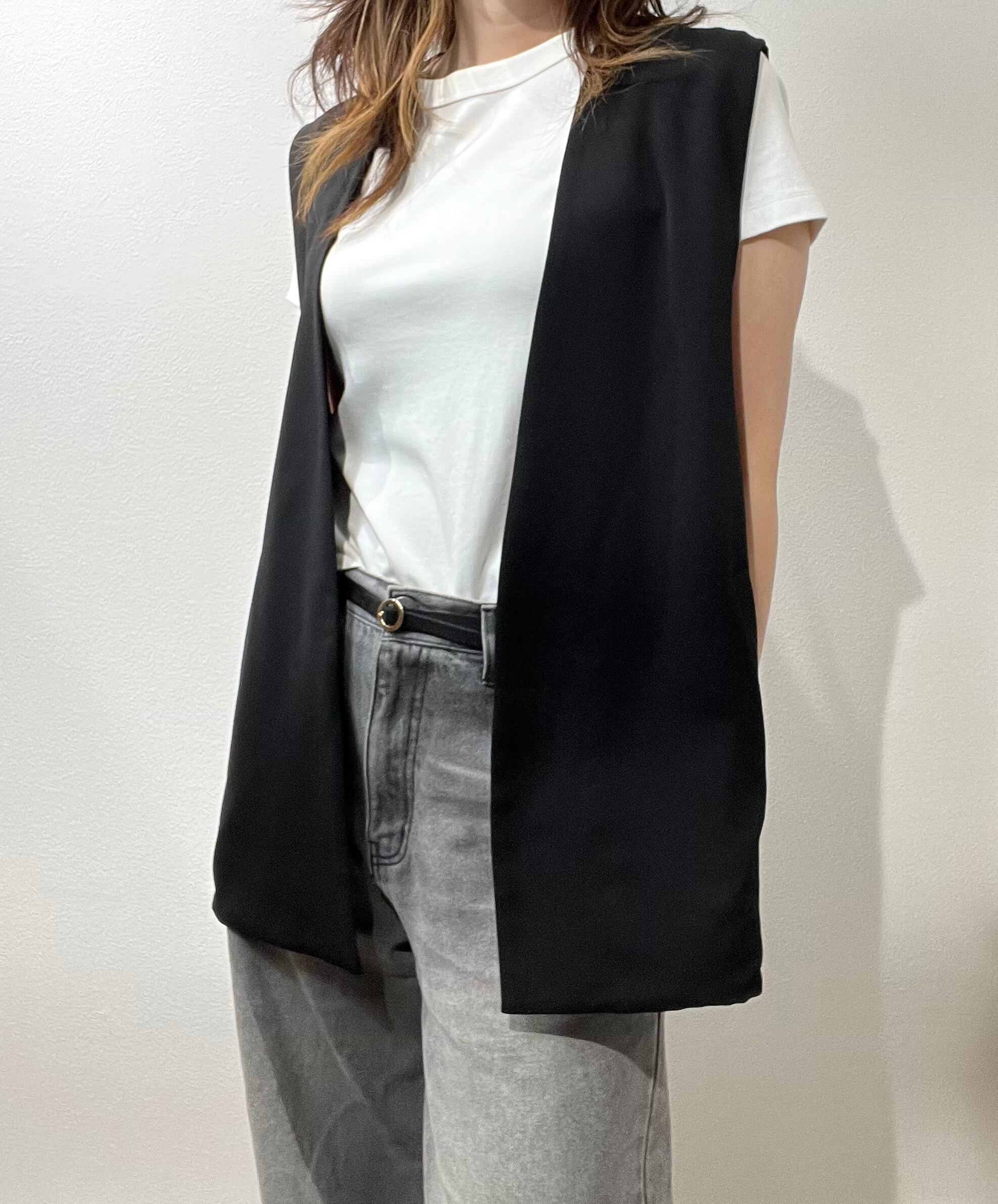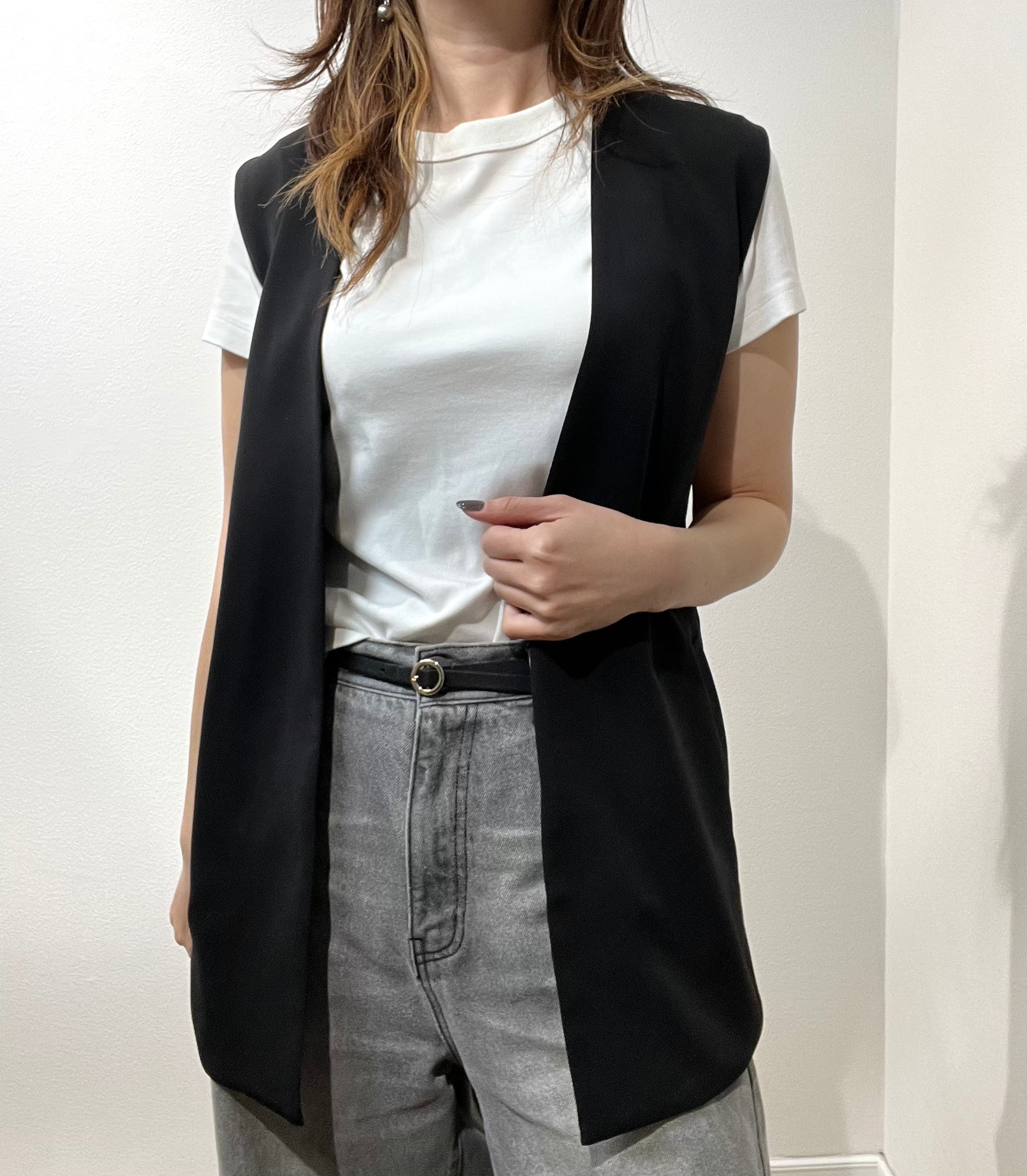 生地も薄手でスッキリ細見えの願う、ミドル丈のジレです。