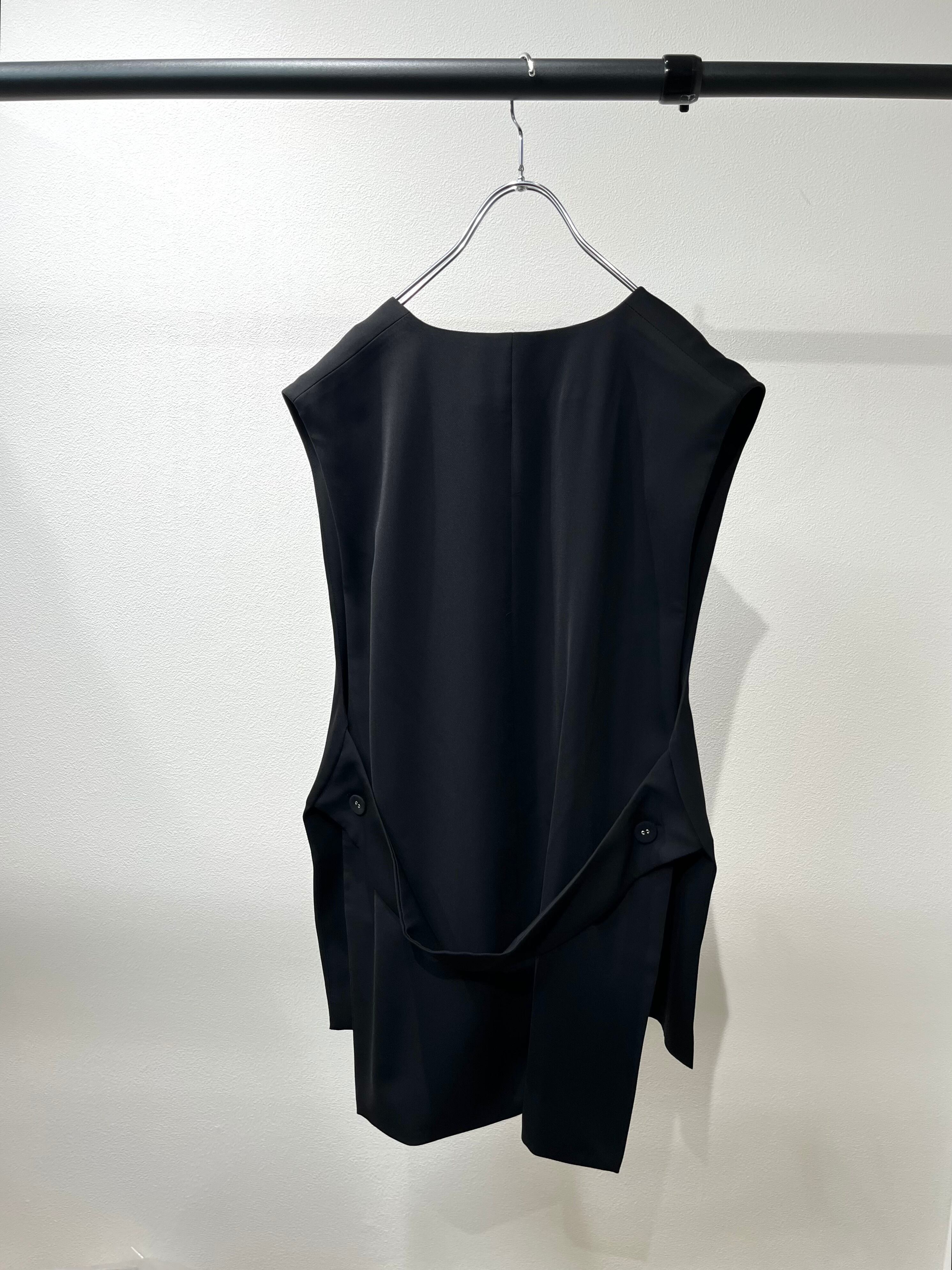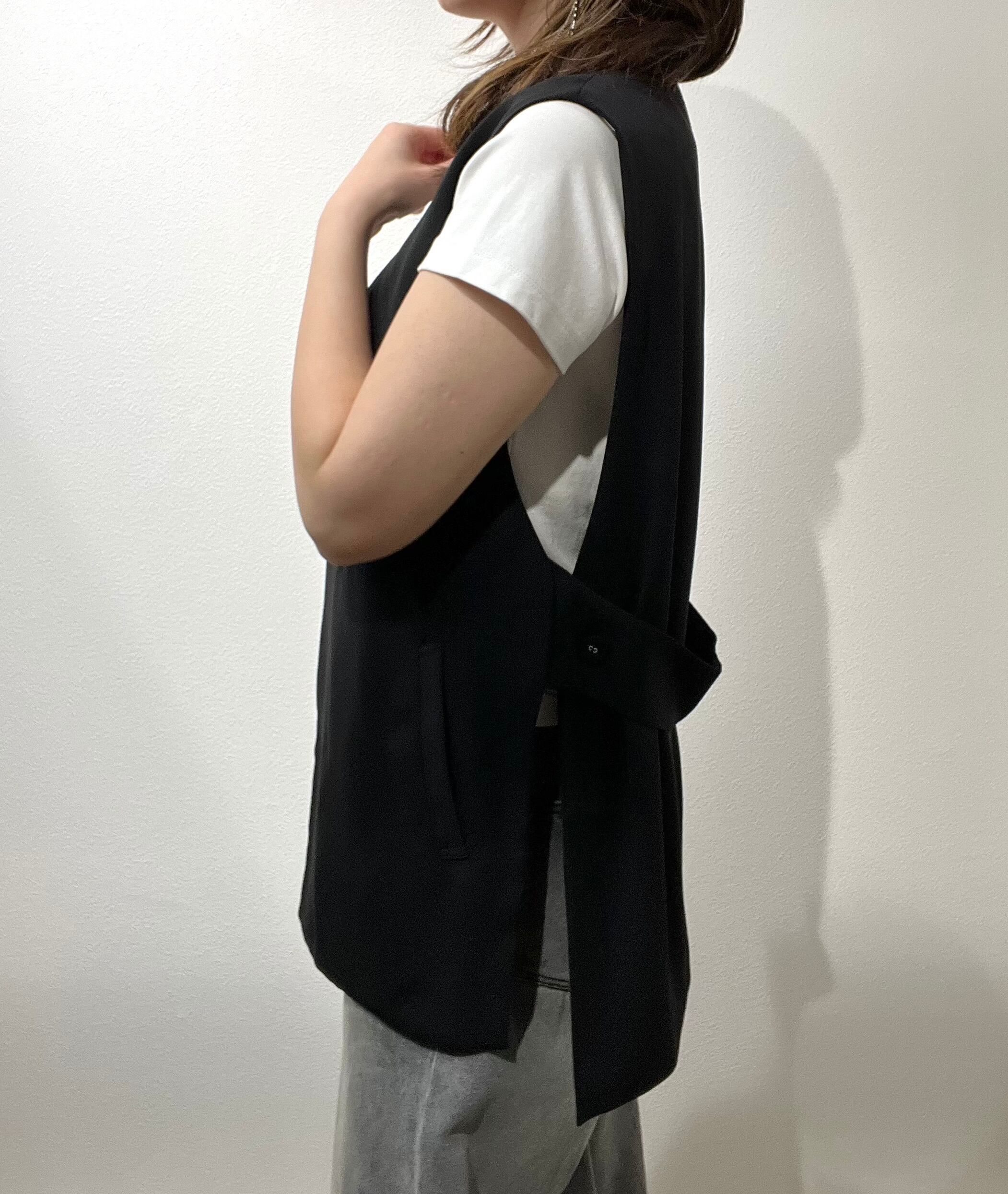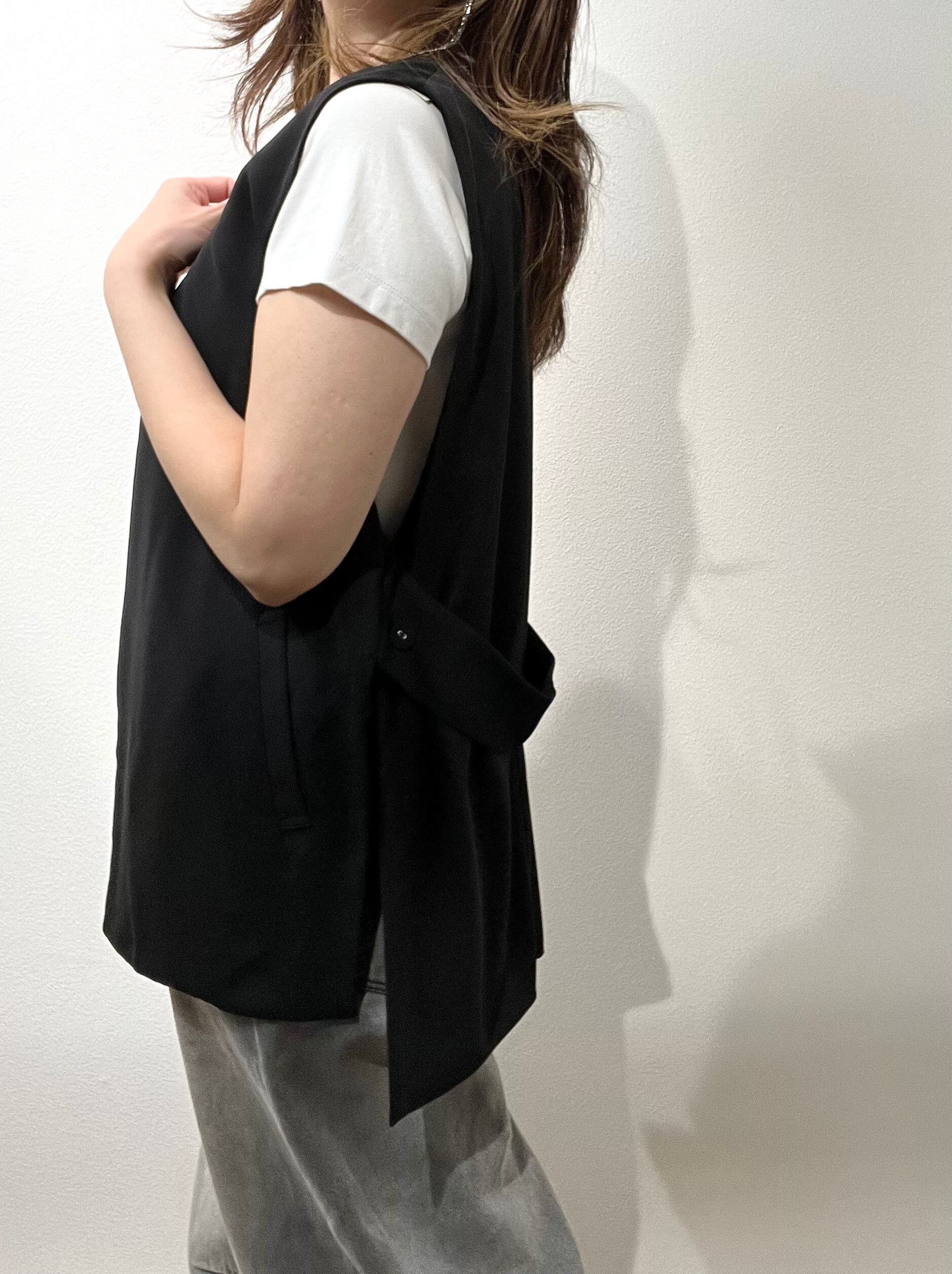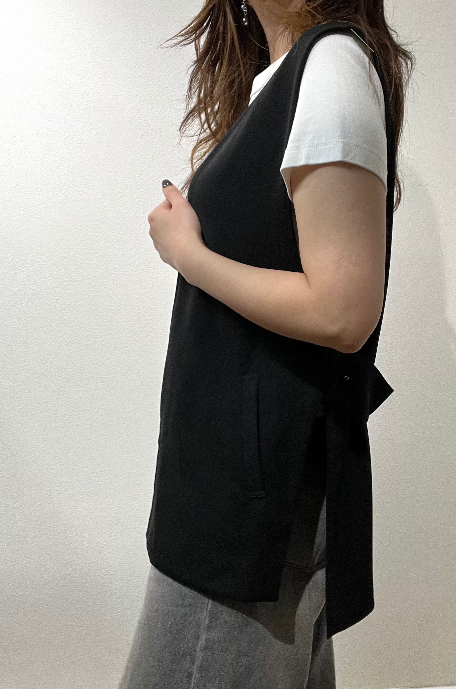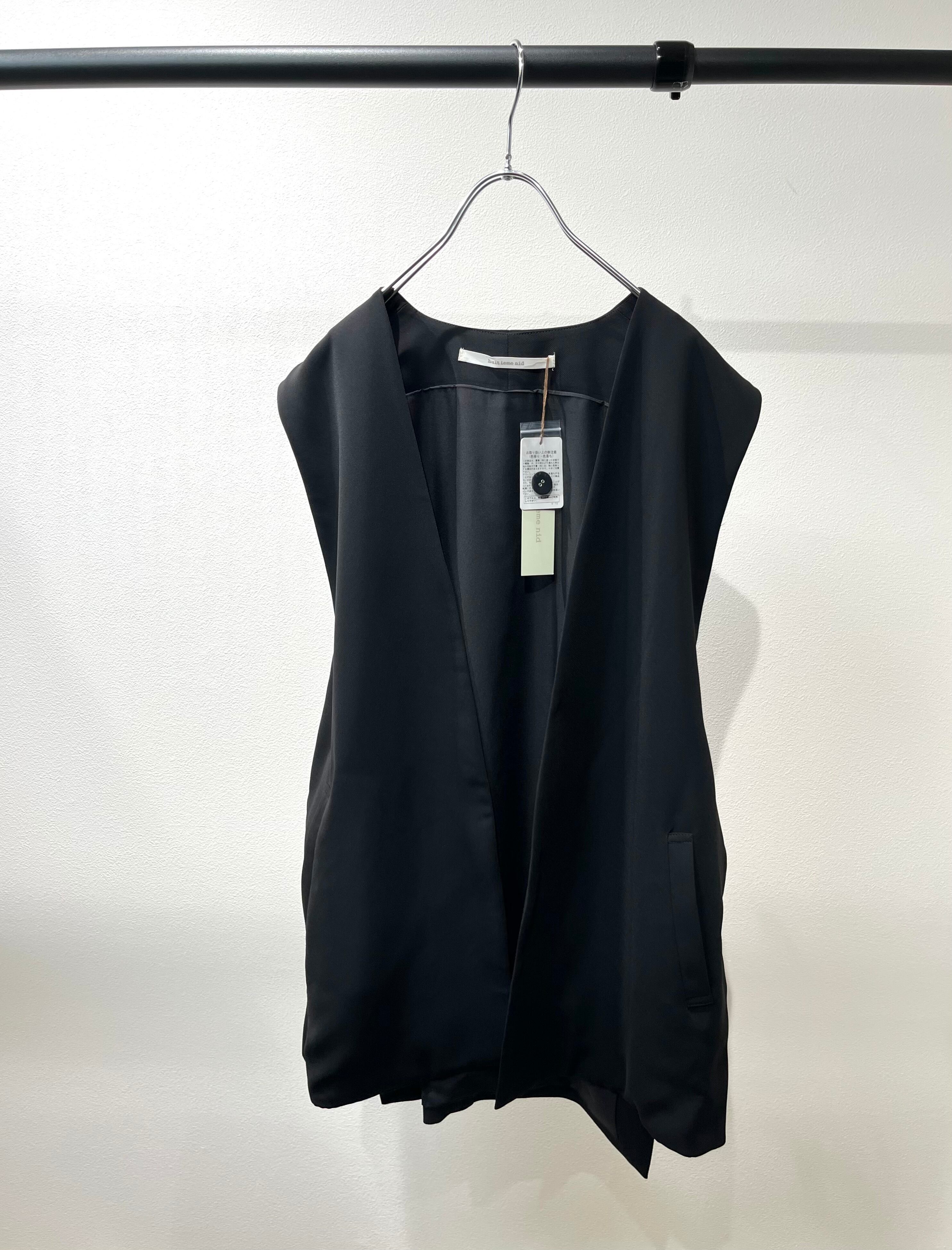 生地も薄手でスッキリ細見えの願う、ミドル丈のジレです。