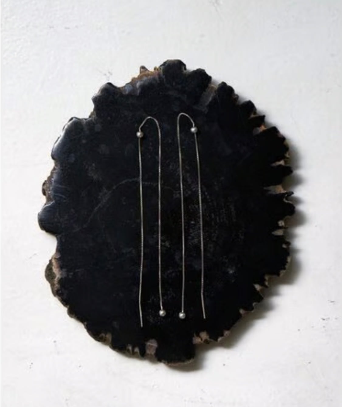 Silver925のボックスチェーンを使用したアメリカンピアス。アメリカンピアスは先端のポストから耳穴に通していただき、お好きな位置でチェーンをUターンさせる仕様になります。小さな丸玉キャッチも付いていますので、前を長くして垂らして後ろをキャッチで留めておくことも可能です。また、チェーン先端に丸玉を施していますので、丸玉部分が耳穴につくまでチェーンを後ろに垂らしてロングピアス風に着用するのもオススメです。