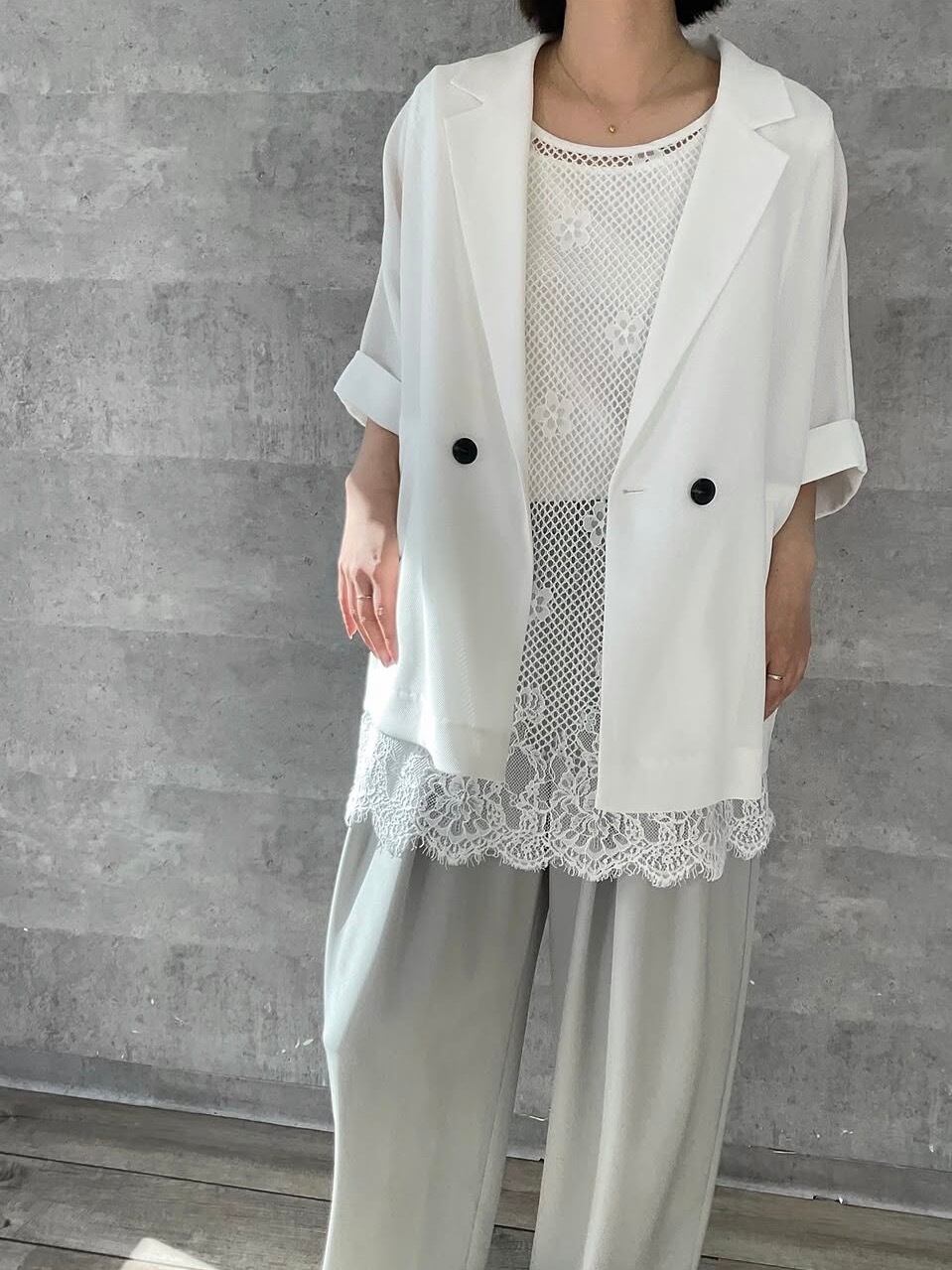 ≫≫インナーとして裾から出して着たり、カットを重ねて柄を楽しんだりコーディネートが色々できます。