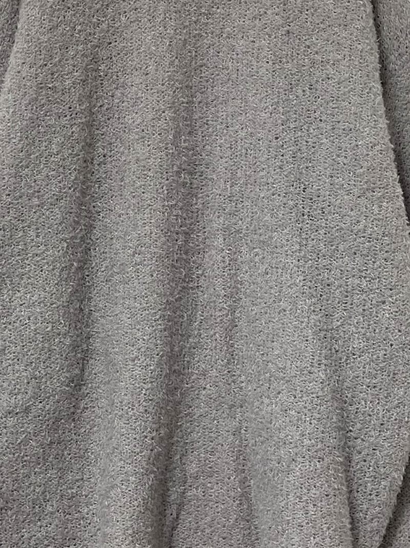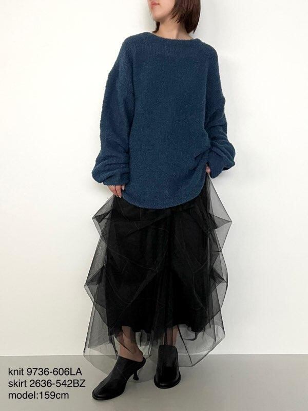 表情ある糸で、シアー感のある編地にする事で、よりエアリーな雰囲気ある1枚にしています。