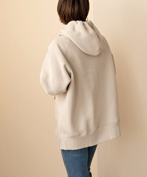 ≫≫ 太めのグログランテープが目を惹く裏起毛パーカー。シンプルで程よいゆとり感とドロストできるフード、こなれ感のあるフィンガーホールや程よい配色のロゴなど
