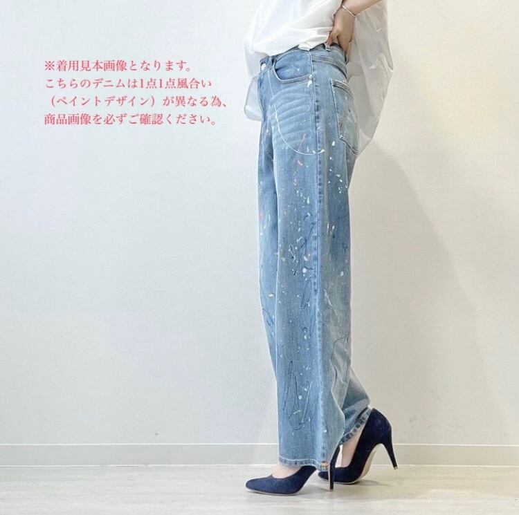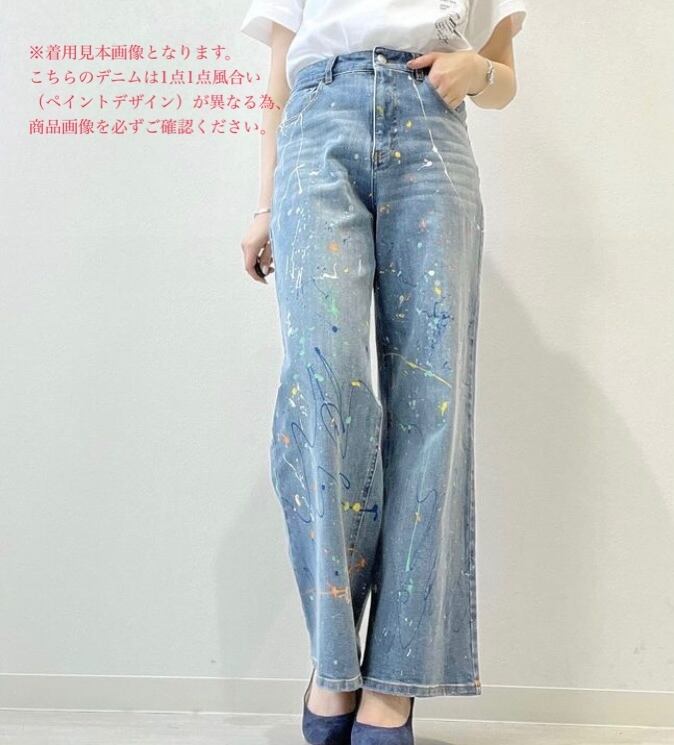 ≫≫POPペイントされた加工が可愛いワイドデニム。
