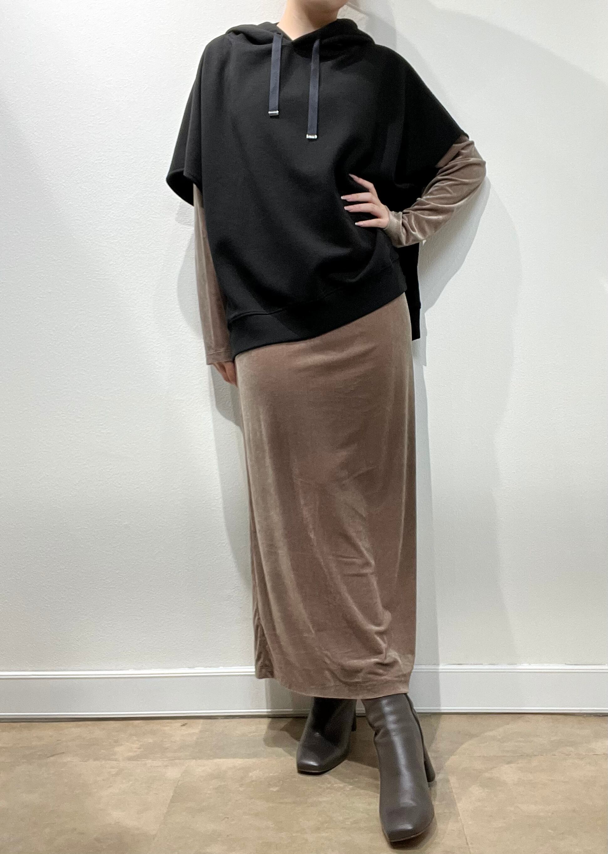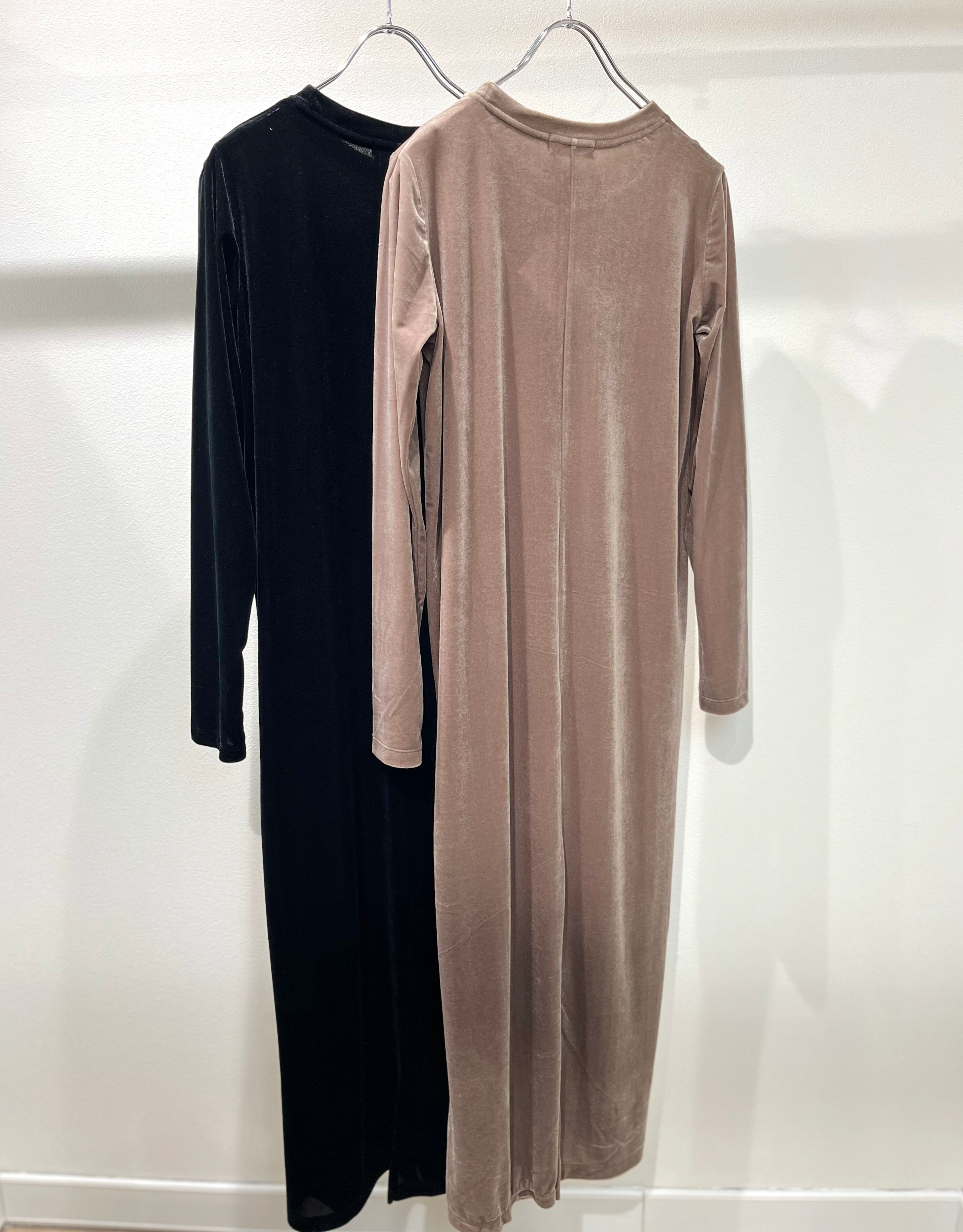 ≫≫シンプルなベロア生地のワンピースですが、一枚でもレイヤードしても◎