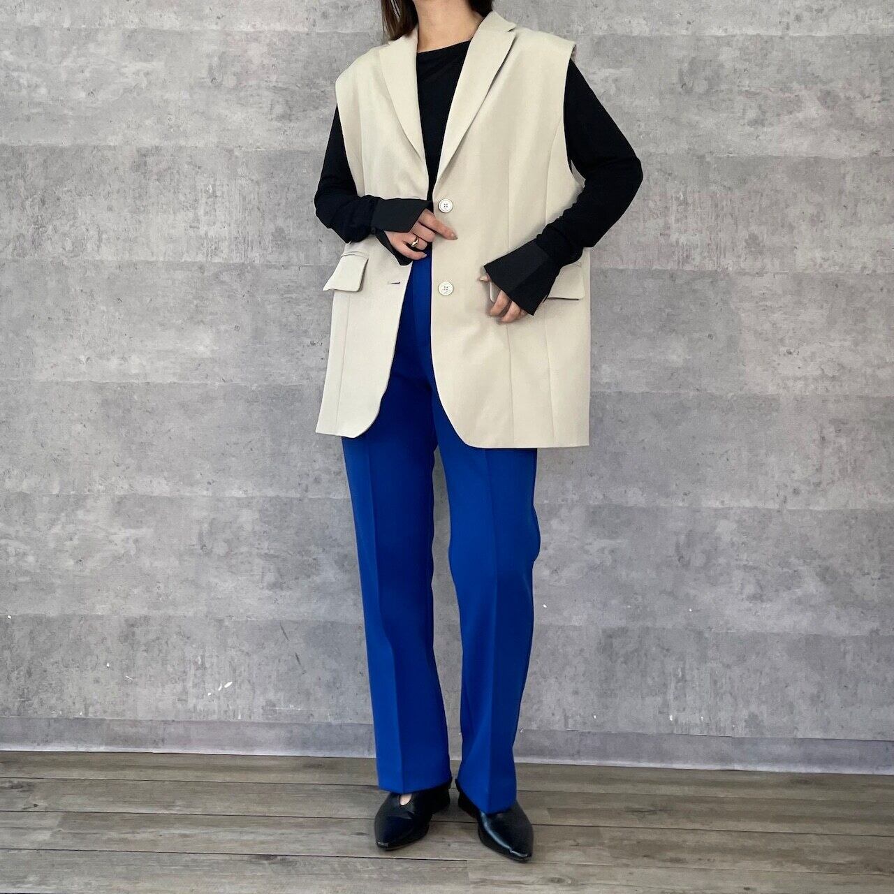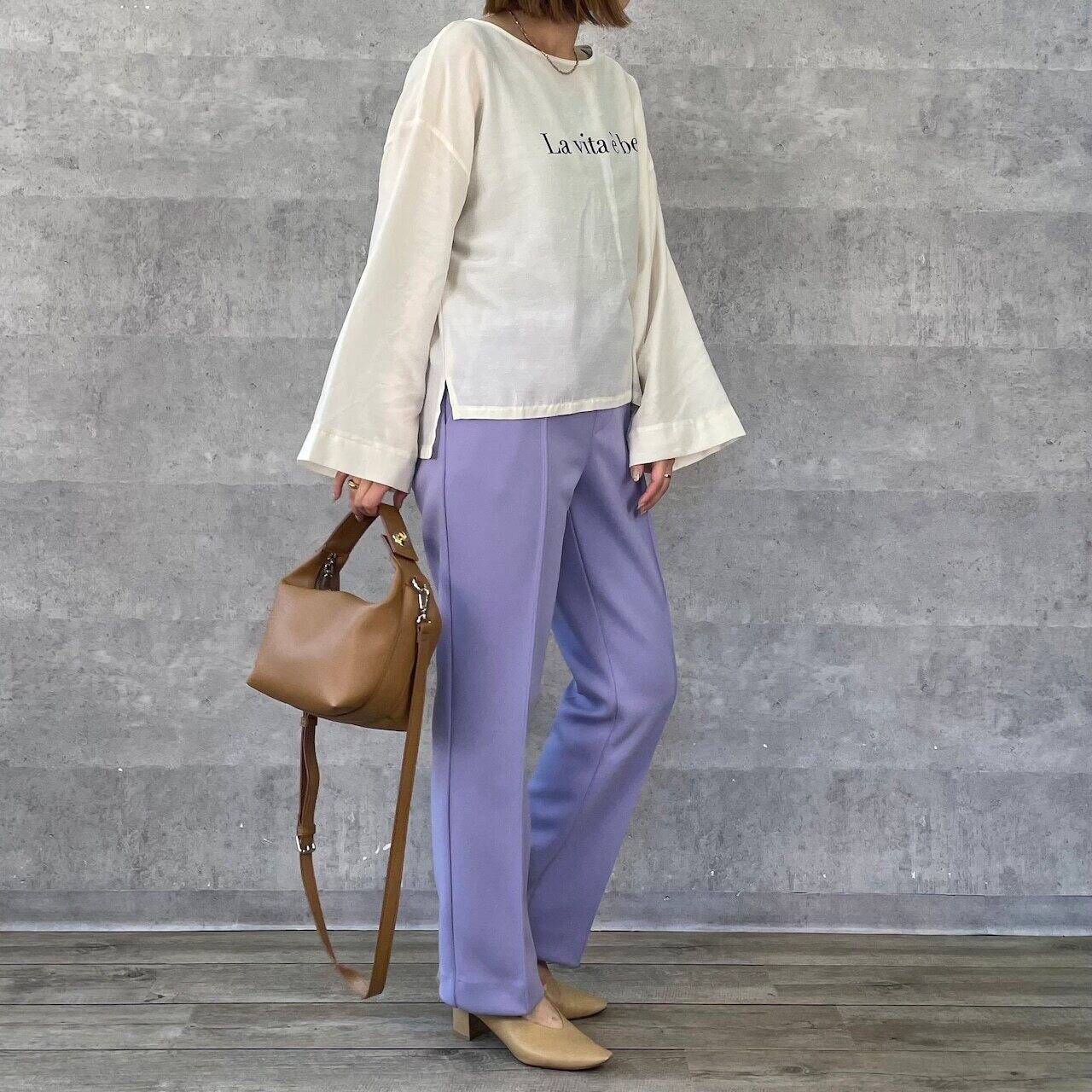 ストレートシルエットで、幅広いコーデに取りれて頂けます。