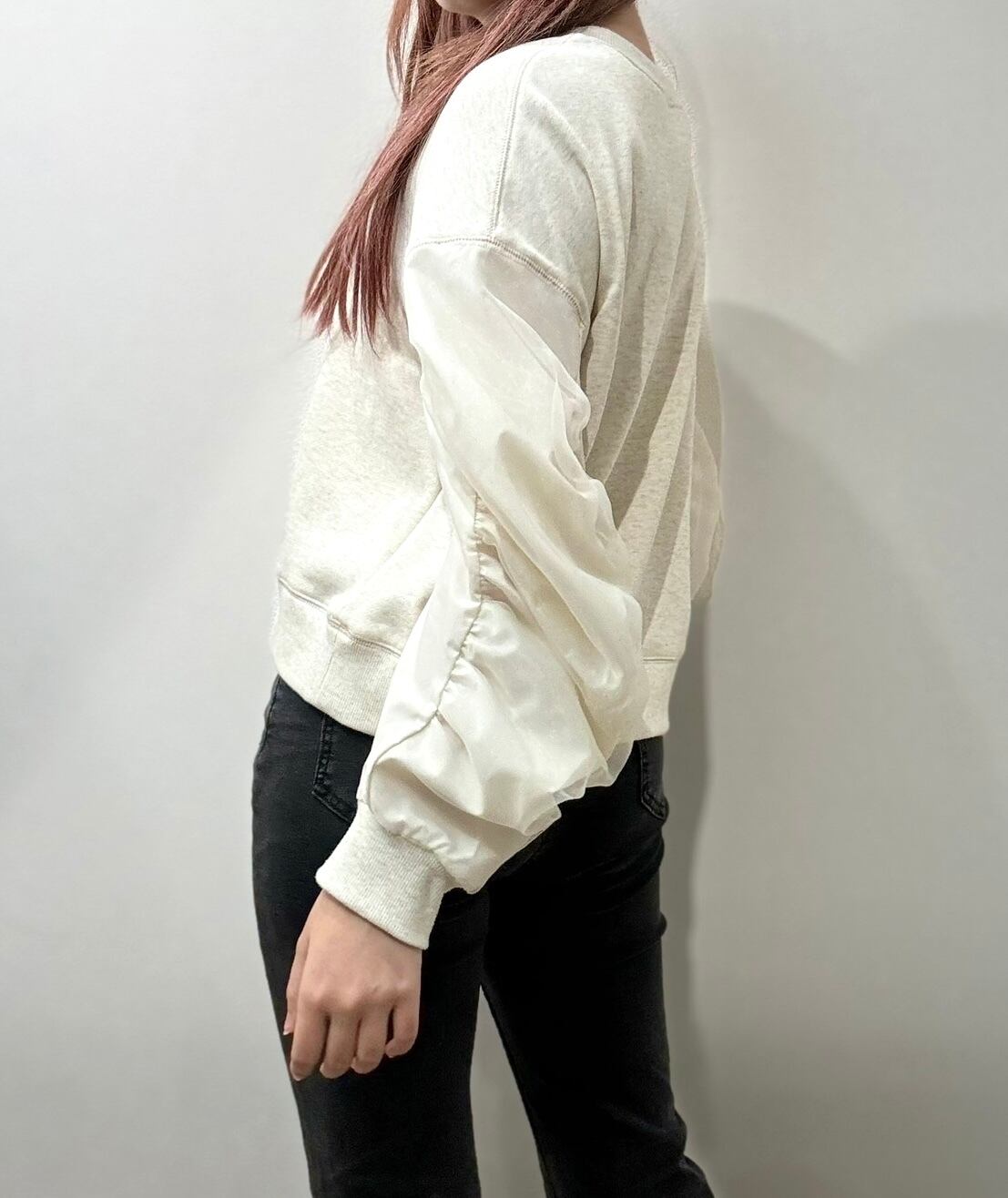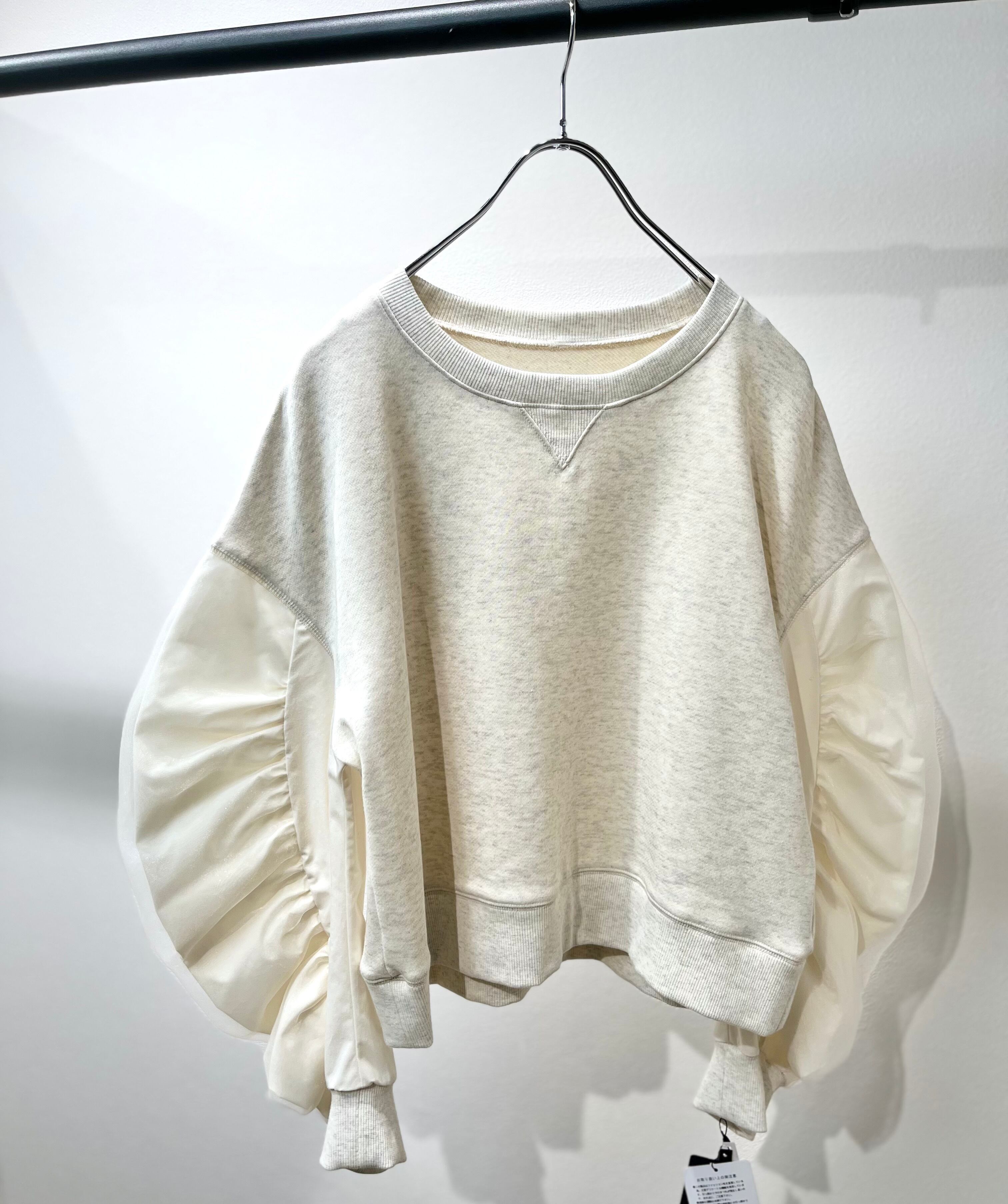 ラウンドシルエットにシアーなオーガンジー生地をドッキング。